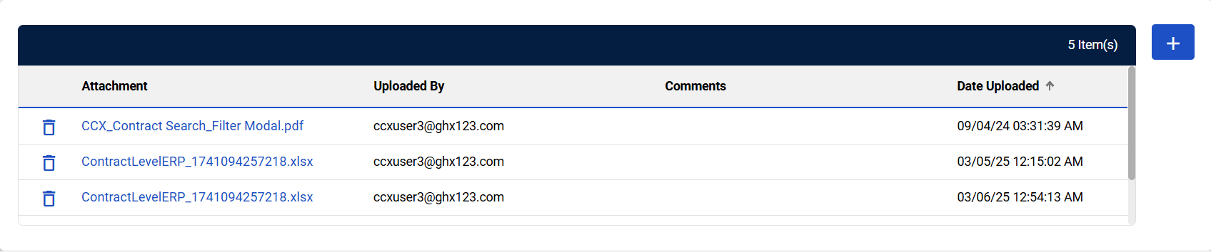The Attachments Tab serves as a centralized repository for all documents and files associated with the contract. This tab enables users to view and manage attachments that provide supporting information, such as contract amendments, related correspondence, or other essential files. It ensures that all relevant documentation is easily accessible and organized.