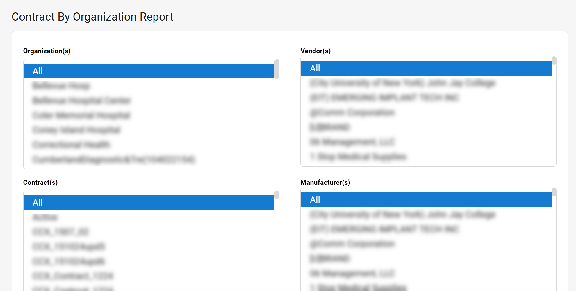 | Contract(s) | Select the contracts you want represented in the report. Select All to select all contracts. |