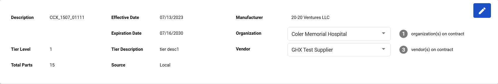Select to add or edit contract details. Button name differs depending on the existing information. Refer to Edit Contract Details for more information. |