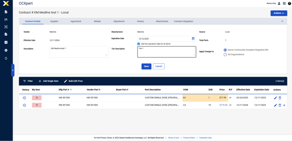 Search for and select the contract you want to edit. Refer to Search for a Contract for more information.