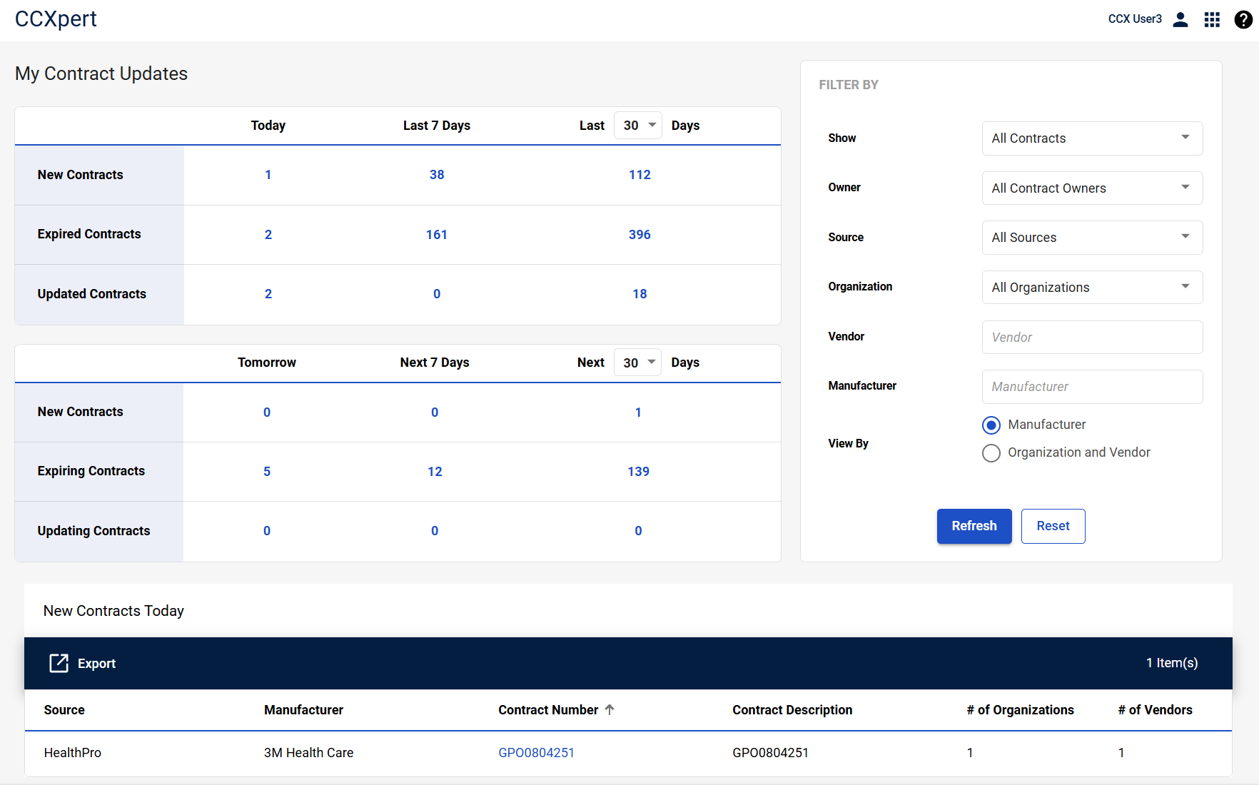 | Manufacturer | Select a specific manufacturer to view only the contracts associated with that manufacturer. |