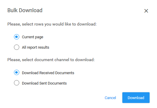 - Current page – Limits the download to those invoices displayed on the current page