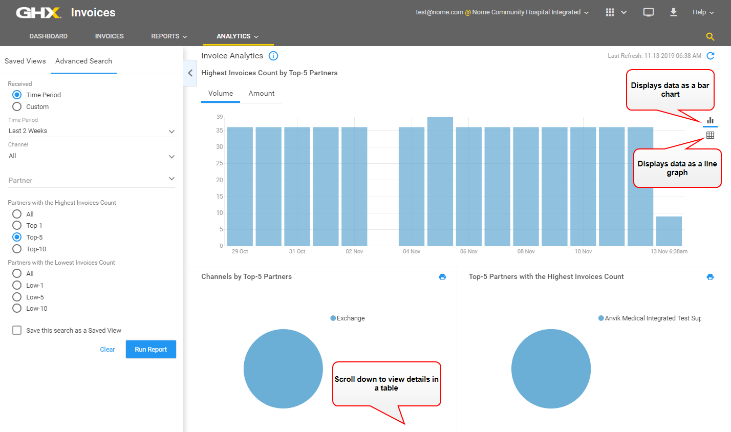 | Invoice Volume Count | Contains the total number of invoices for the selected time period. |