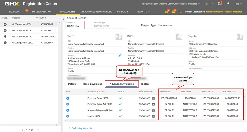 The Platform Exchange Test (PET) process is an integrated approach for EDI testing. It uses the Automated Test Supplier (ATS), which is an internal GHX supplier that providers use to test standard responses received in return documents from suppliers or distributors. You can use this self-managed functionality to test EDI transactions during the project implementation and post go-live with your MMIS. This job aid contains details about the PET process, instructions for registering the ATS, and definitions of transaction statuses to use when monitoring testing results.