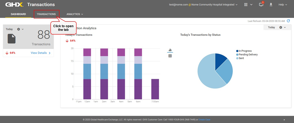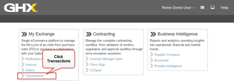 Click Transactions in the My Exchange list. The Dashboard opens.