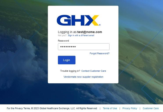 Go to https://login.ghx.com. The GHX log in page opens.