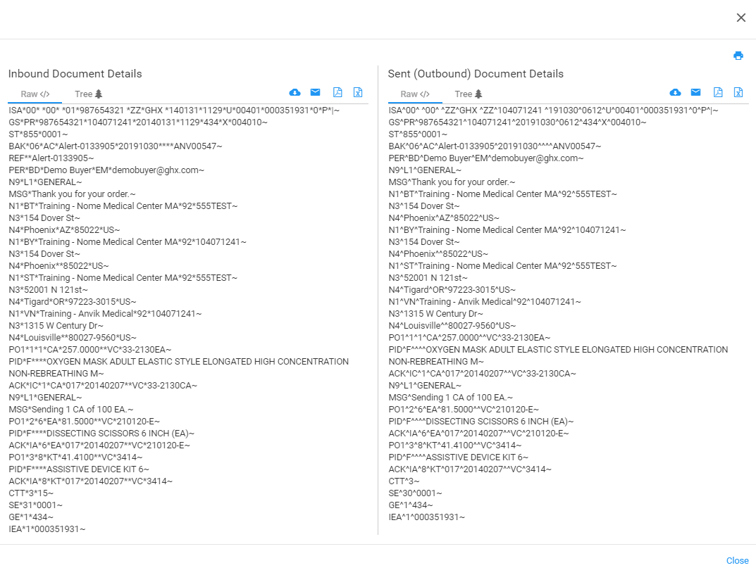 icon to see a side by side view of the inbound and outbound documents (optional).