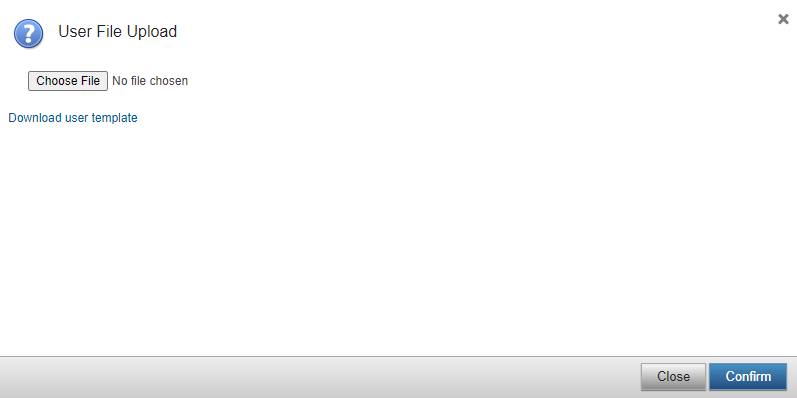 - Click the Import Users link in the View Users area. The User File Upload dialog box opens.