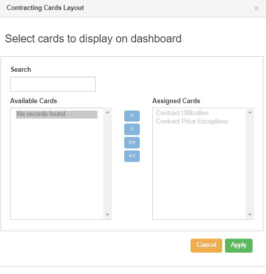 - Click the Configure Cards Layout link. The Contracting Cards Layout dialog box opens.