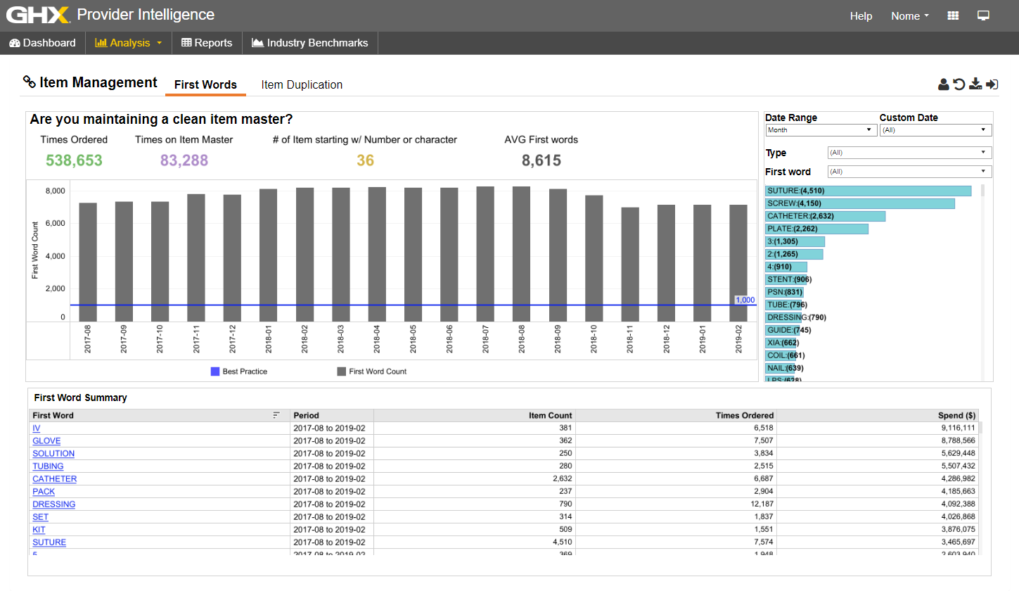 - Click the Item Duplication tab to view a bar chart of duplicate buyer part numbers over time.