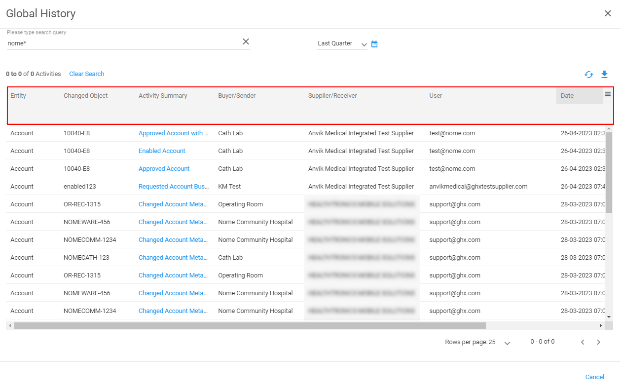 Use Global History to search across your organization and accounts for specific changes and actions that may impact current and future Exchange processes.
