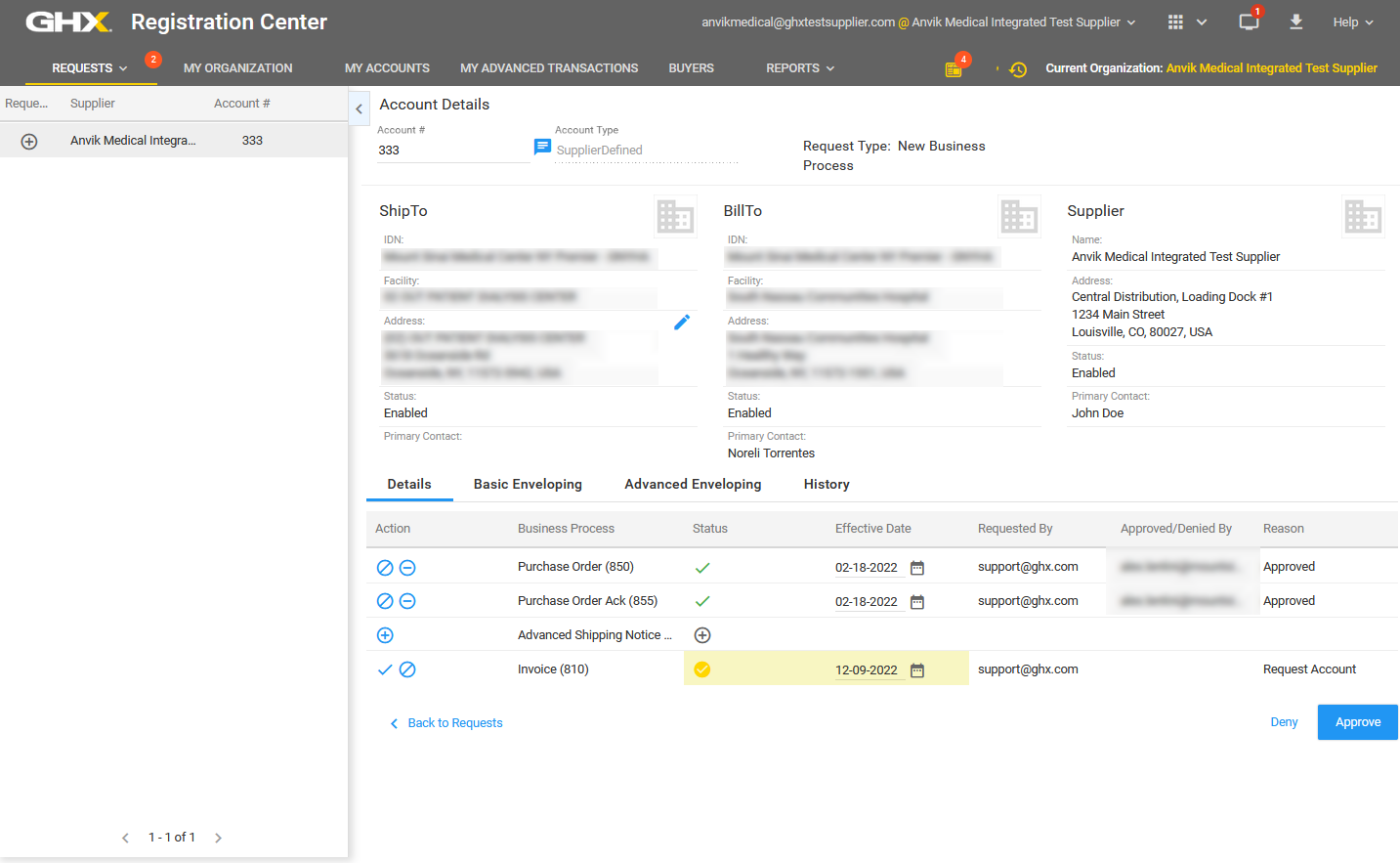 - Compare the account information in the request to your MMIS or ERP to ensure the information is correct.