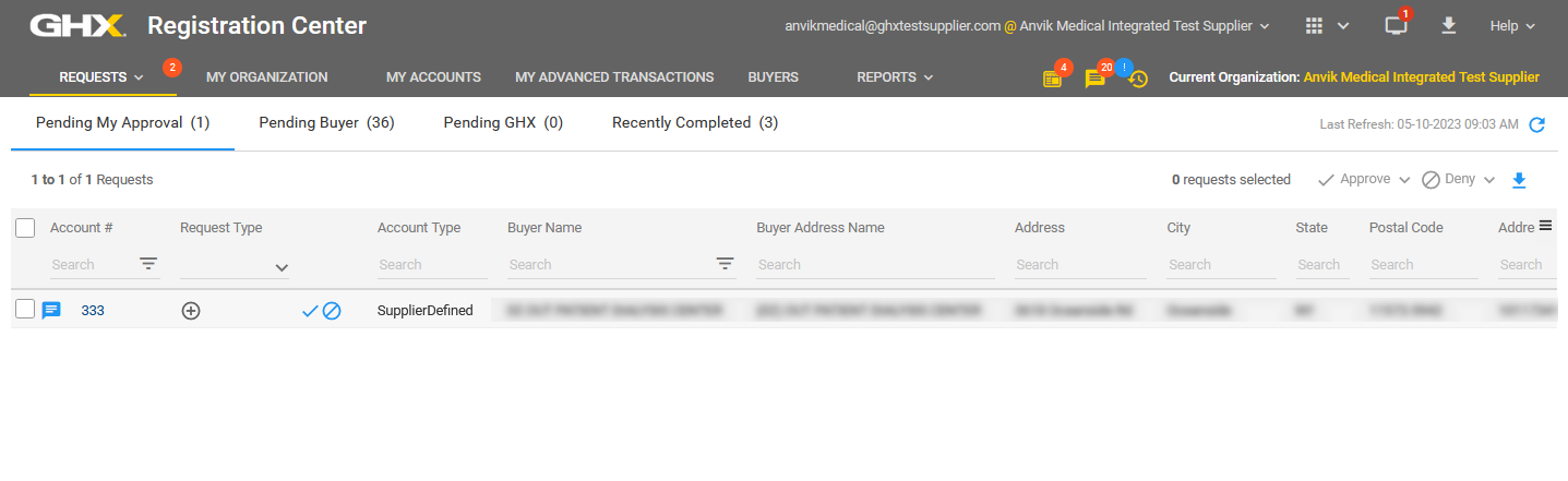 After you approve or deny a request and there are no more pending business processes on the selected account, the account will be removed from the Pending My Approval view.