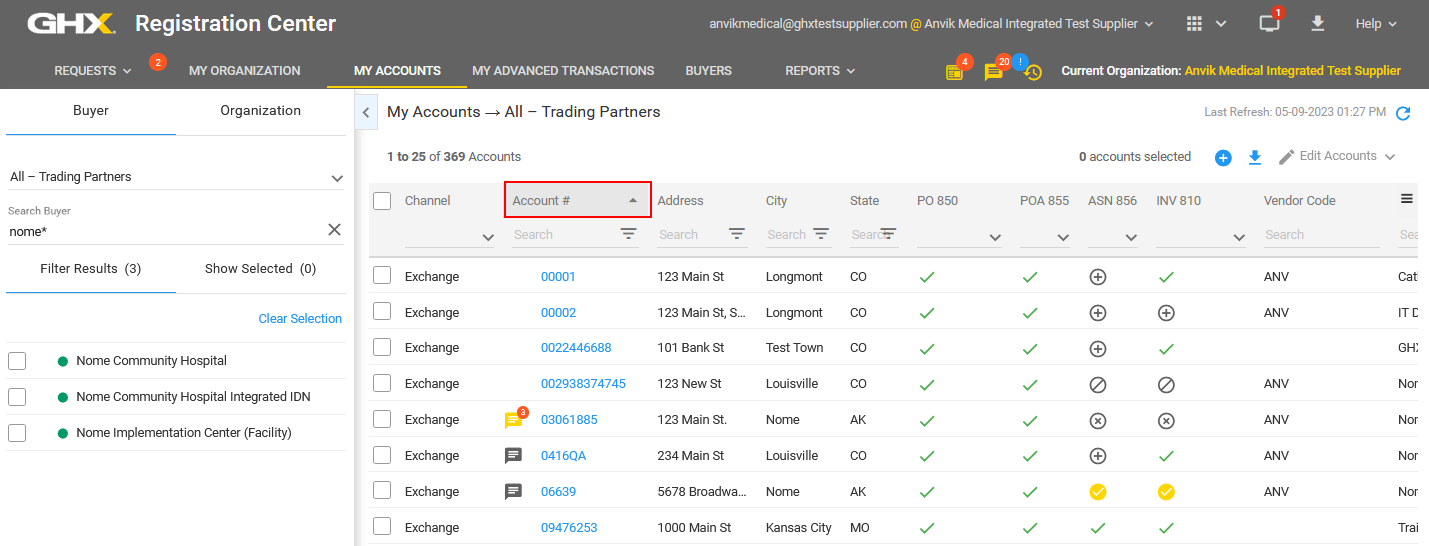 icon in the Account # column.