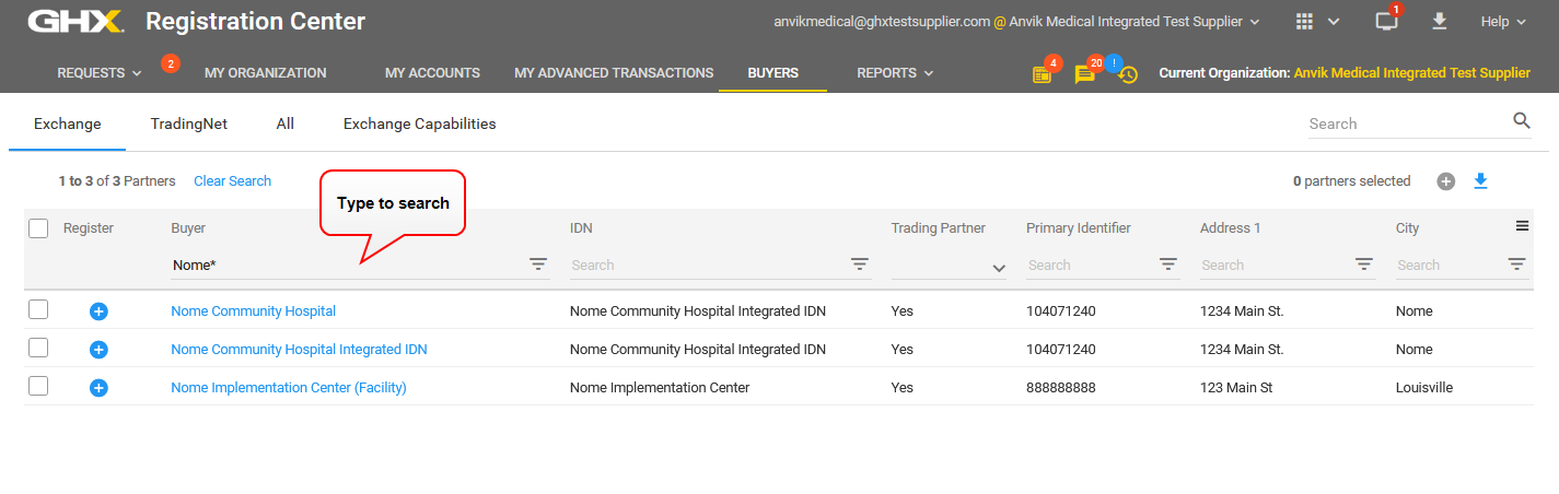 - Search for buyer by name or by using other criteria.
